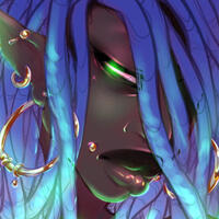 A detailed cel-shade or paint-style portrait of your character from mid-bicep/shoulders and up. Simplistic backgrounds and minimal props are included, unless a transparent background is requested.